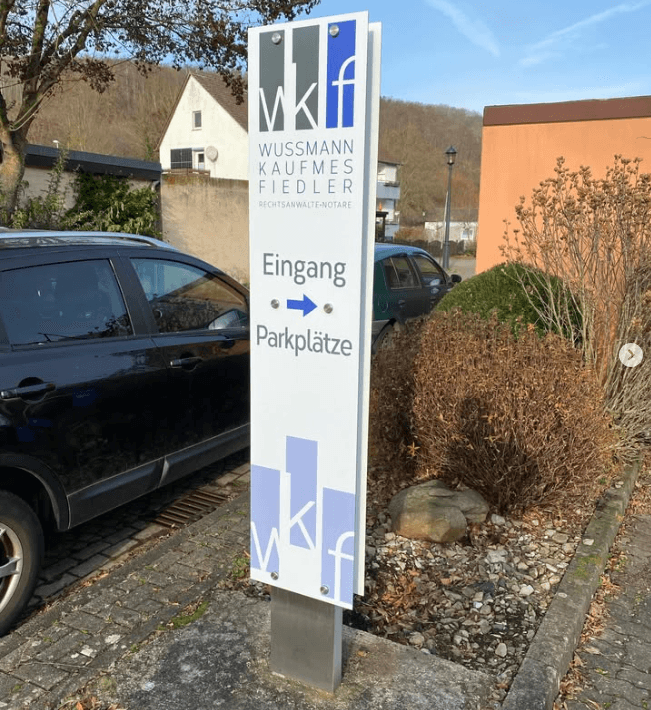 Neues Parkplatzschild gefertigt aus stabilem Profilrohr, hochwertig mit VA verkleidet und ausgestattet mit zwei Aluverbund-Schildern inklusive Beschriftung